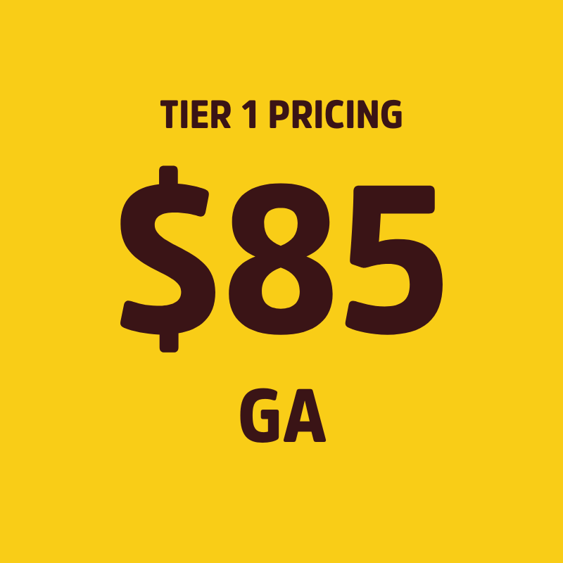 Tickets are sold in tiered pricing, which means the earlier you buy, the more you save. As each tier sells out, the price automatically increases—so don’t wait! Lock in your spot (and the best deal) now before the next tier sells out and prices go up.